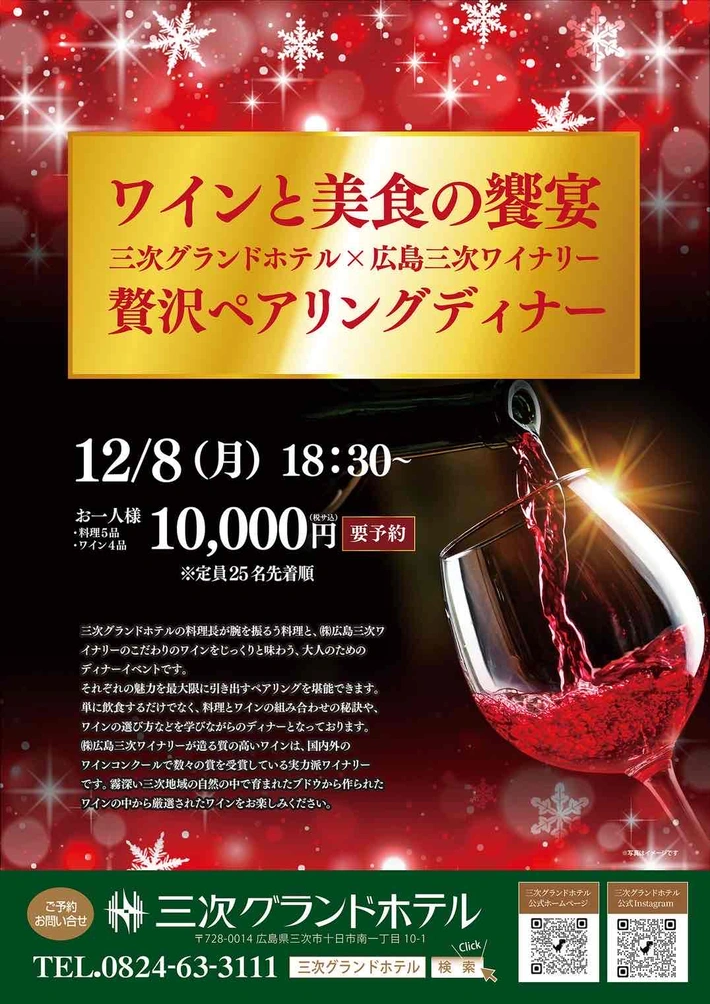 このたび、広島三次ワイナリーさんとのコラボで 「ワインと美食の饗宴~贅沢ペアリングディナー~ 三次グラ・・・