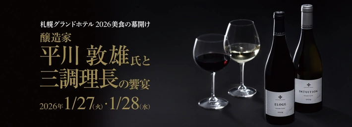 【主催者からのコメント】 ワインを主役に贈る、美食のコラボレーション。 洋食はノーザンテラスダイナー調理長・鳴海、和食はガーデンダイニング 環樂調理長・澤田、デザートは製菓長・小島が担当。 余市 平川ワイナリーの平川氏が選び抜いたワインが、至高の晩餐を鮮やかに彩ります。 ■ 詳細・申込み 札幌グランドホテル 醸造家 平川 敦雄氏と三調理長の饗宴