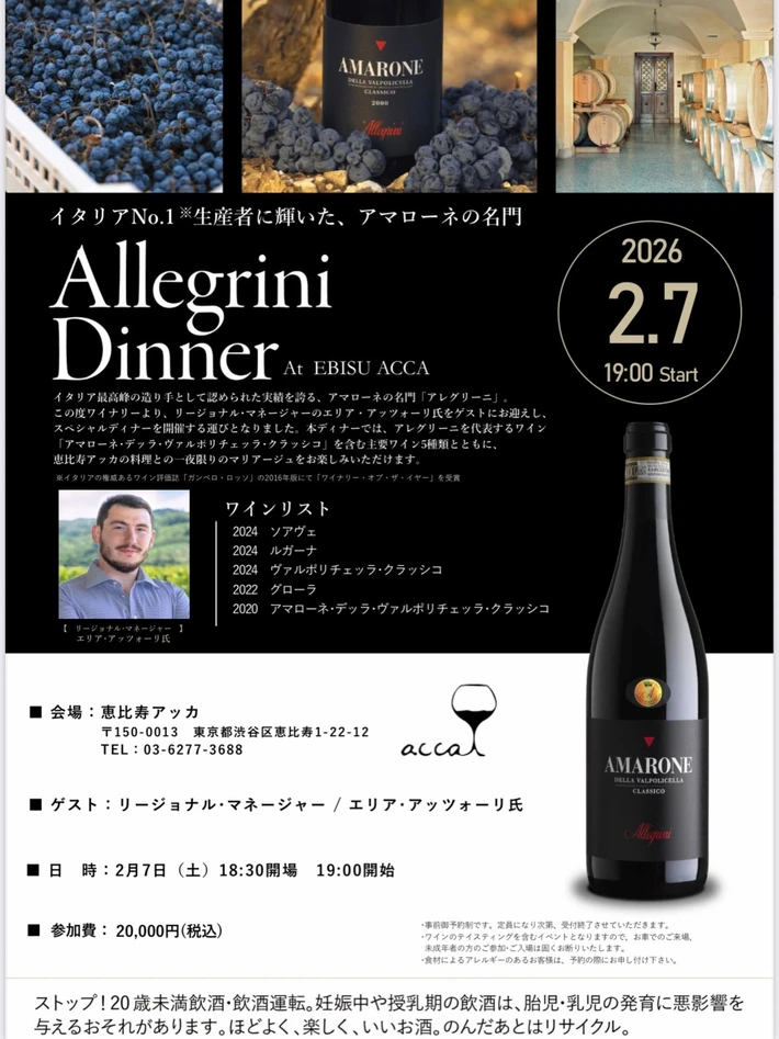 【主催者からのコメント】 恵比寿アッカにて、2/7(土)に、アレグリーニのメーカーズディナーを開催することになりました。 メーカーズディナーに良く行かれる方はもちろんのこと、メーカーズディナー初めての方も是非お越しいただければ幸いです。 メーカーズディナーって楽しいです! ■ 詳細・申込み 恵比寿アッカ アレグリーニ メーカーズディナー(インスタグラム)