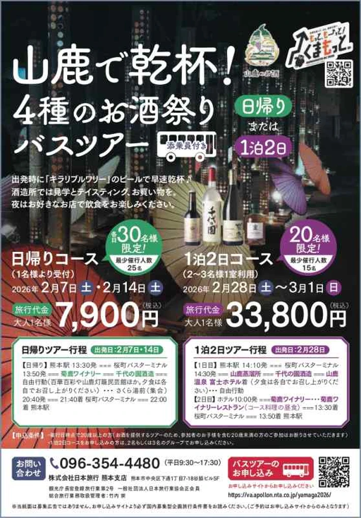 山鹿で乾杯!4種のお酒祭りバスツアー(日帰りコース)