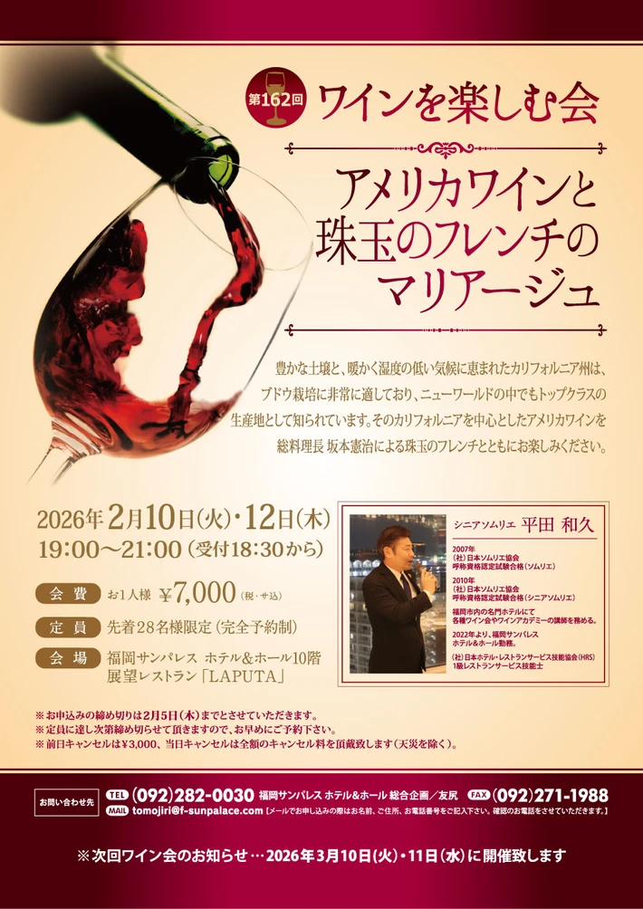 福岡サンパレスホテル アメリカワインと珠玉のフレンチのマリアージュ