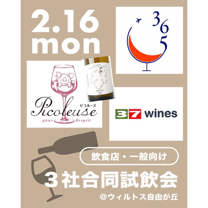 ウィルトス自由が丘主催のワインイベントです。 【主催者からのコメント】 2月のインポーター試飲会はピコルーズ(フランス)&365wine(スロヴェニア)&37wines(イタリア) 3社・3カ国による試飲会を開催いたします。 ウィルトスの試飲会ではなかなか揃わない各国専門インポーター3社が揃う貴重な試飲会となりそうです✨ ・ピコルーズ (フランス)・・・