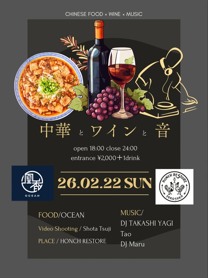 【主催者からのコメント】 話題の中華屋 @chuka_ocean と 新鋭 @honch_restore のソムリエが厳選するロゼワインとR&Bが出会う夜🍷👨🎤👩🎤🍷 漸く実現🔥 当日はチーズ麻婆豆腐、ラム餃子など、ワインに合うスペシャルなメニューをご用意致します🍷 ■ 詳細・申込み 凰香オーシャン 中華とワインと音(インスタグラム)