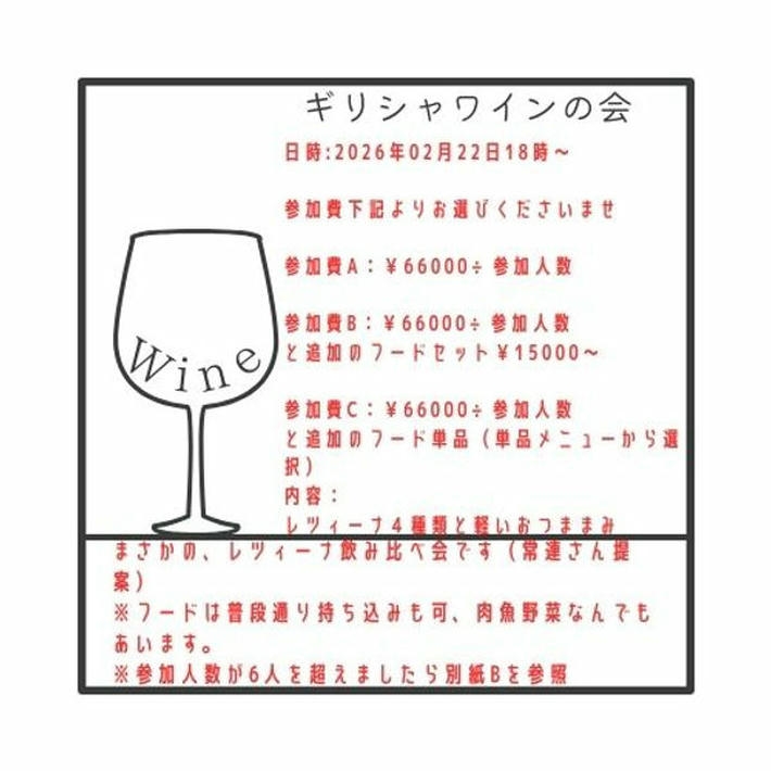 隠れ屋ワインバーApio主催のワインイベントです。 【主催者からのコメント】 「ワインをもっと身近に、もっと楽しく!」 現役ソムリエが厳選した世界のワインを、贅沢に**フリーフロー(飲み放題)**でご提供します。 今回のワイン会は、既婚・未婚などのステータスは一切問いません。「ワインが好き」「新しい趣味の繋がりが欲しい」「プロの話を聞いてみたい」という方なら・・・