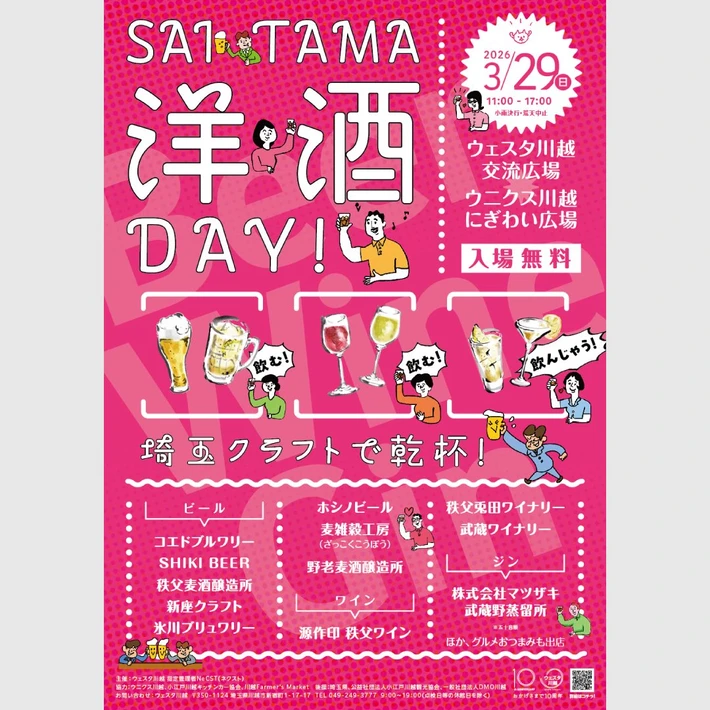 【主催者からのコメント】 埼玉の地ビール・埼玉県産ワイン・クラフトジンが、ウェスタ川越に集結。 春空の下で、心地よく埼玉クラフトを味わおう!🌸 ■ 詳細・申込み SAITAMA洋酒DAY!