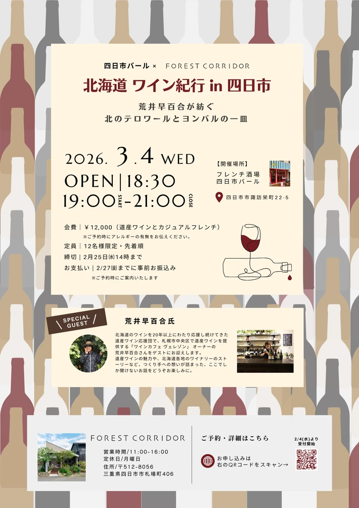 【主催者からのコメント】 2026年3月4日(水)日本人女性醸造家 平林園枝 さんをお迎えし、平林さんがカリフォルニアで手がける『Six Cloves Wines』のワイン会を開催します。 今回のワイン会は、10名様前後の少人数制ディナーイベント。 ワインと料理を楽しみながら、造り手ご本人のお話をじっくり聞いていただく会です。 ■ 詳細・申込み ワインサロン・・・