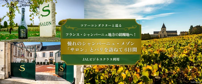 【主催者からのコメント】 株式会社ジャルパック主催のワインイベントです。 フランス・シャンパーニュ地方の銘醸地へ! 憧れのシャンパーニュ・メゾン「サロン」とパリを訪ねて 6日間 ツアーポイント ●世界中の愛好家が憧れる「幻のシャンパーニュ」としても有名で、一般には訪問を受け入れていないシャンパーニュ・メゾン「サロン」を特別訪問し、貯蔵庫やぶどう畑へご案内しま・・・