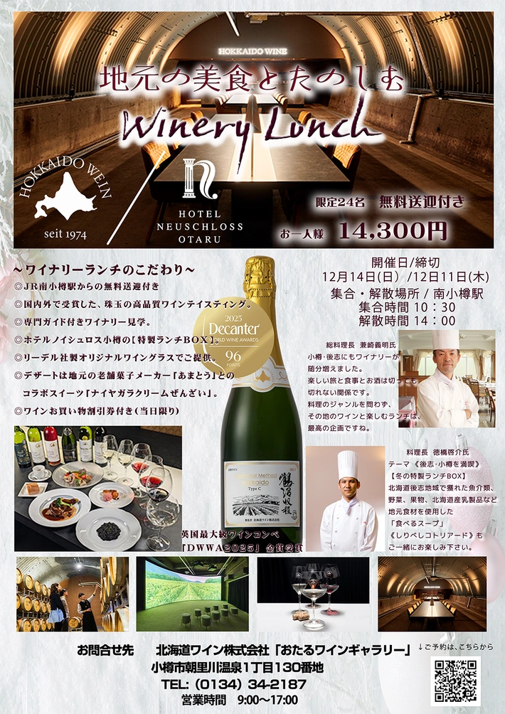 コープサッポロ主催のワインイベントです。 【主催者からのコメント】 毎年好評のイベントを今年も開催いたします。 カジュアルにフレッシュな新酒の道産ワインを飲み比べたり、道産食材の料理を楽しみましょう! ■ 開催日 2025年11月25日(火) ■ 会 場 ラソール ガーデン札幌 2階フィオーレ 札幌市中央区大通27丁目2-1 (地下鉄「円山公園駅」より徒歩1・・・