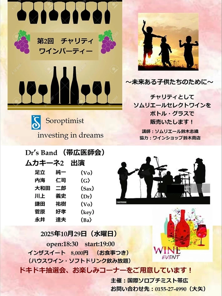 国際ソロプチミスト帯広主催のワインイベントです。 【主催者からのコメント】 国際ソロプチミスト帯広様主催チャリ・・・