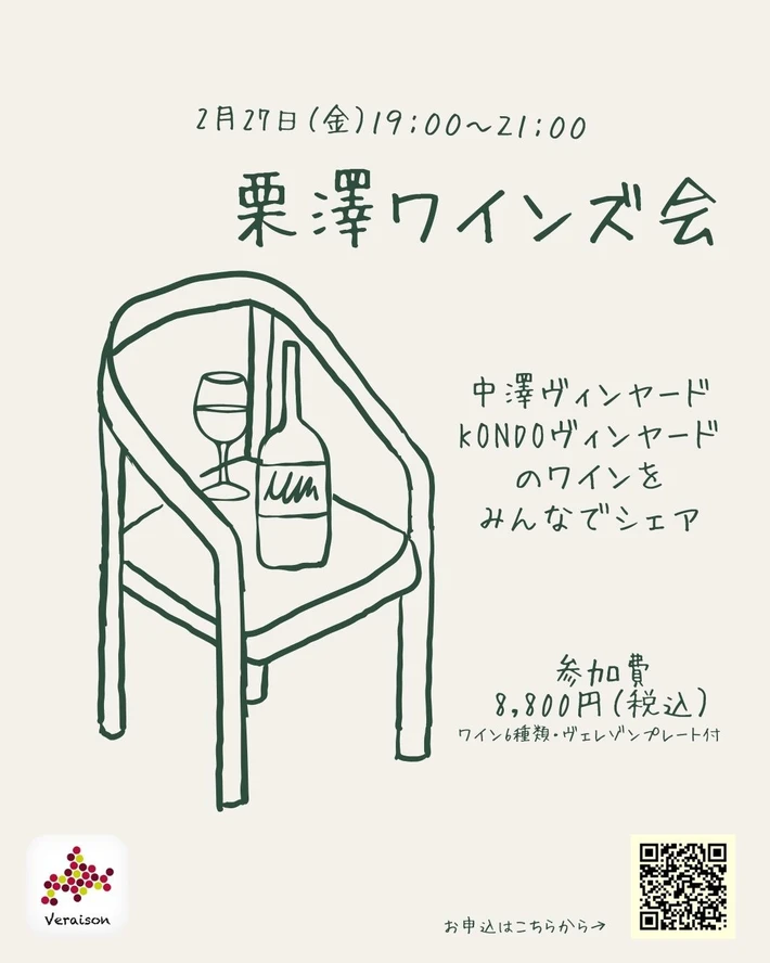 【主催者からのコメント】 岩見沢にある「栗澤ワインズ」 中澤ヴィンヤード・KONDOヴィンヤードの両ワインを楽しみます。 ワイナリー設立前のワイン達も皆様に飲んで頂きたい♡ 大切なワイン達💛もセレクトさせて頂きました。 今回限りのワインもあったり。。。 ■ 詳細・申込み ヴェレゾン 栗澤ワインズ会