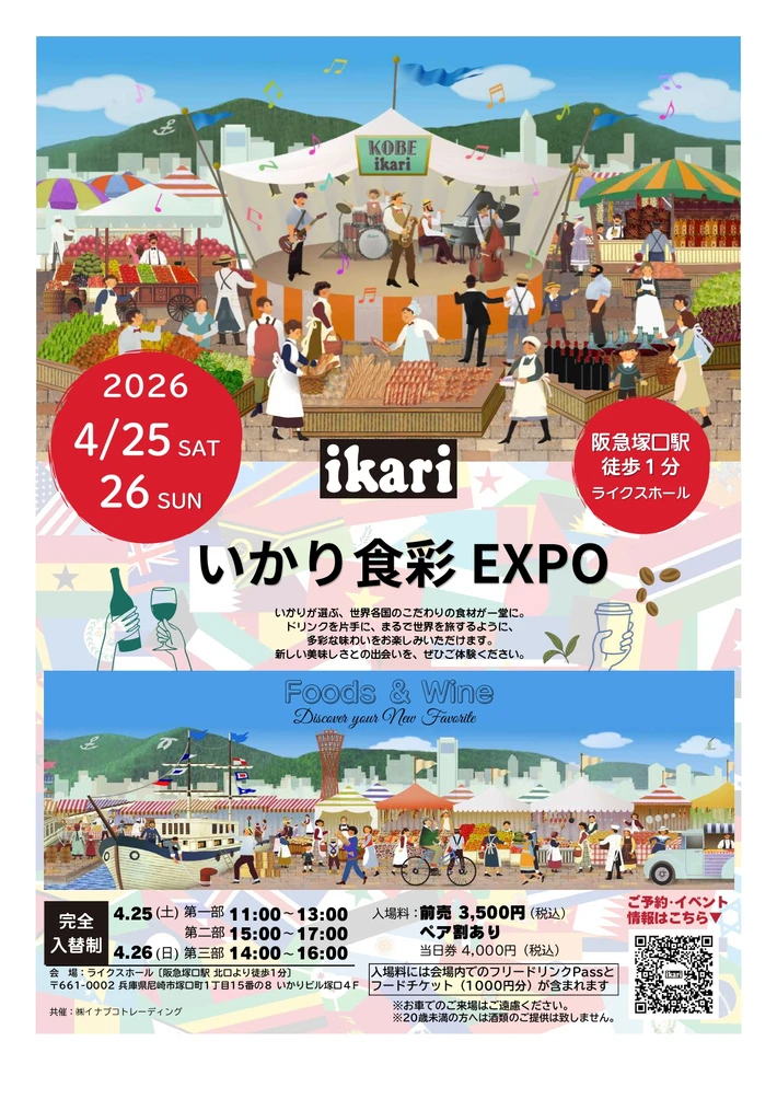 【主催者からのコメント】 いかりスーパーマーケット主催のイベントです。 〔ikari いかり 食彩EXPO 2026 開催いたします!〕 いかりが選ぶ 世界各国のこだわり食材が一堂に。 ドリンク片手に、まるで世界を旅するように、多彩な味わいをお楽しみいただけます。 新しい美味しさとの出会いを ぜひご体験ください。 ■ 開催日 2026年04月25日(土)~2・・・
