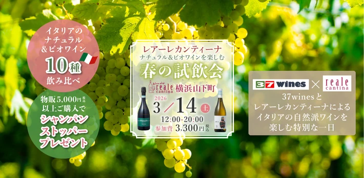 【主催者からのコメント】 レアーレカンティーナ主催のワインイベントです。 イタリアの自然派ワイン10種類を気軽にテイスティング! ワインのインポーター「レアーレカンティーナ」と「37wines」が輸入しているイタリアの自然派ワイン10種をご賞味いただけます。 日常に寄り添う1本から、思わず誰かに語りたくなるような1本まで。 ナチュールワインが初めての方も、愛・・・