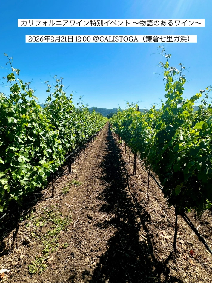 【主催者からのコメント】 「レストラン・カリストガ 物語」カリフォルニアワイン会 レストラン・カリストガでは、5種類の厳選されたカリフォルニアワインとシェフ特製のコース料理を組み合わせた特別なペアリングランチを毎月開催しています。 ワイン愛好家の方はもちろん、プロフェッショナルの方や、心に残るワインギフトやワンランク上のホームエンターテインメントを求める方に・・・