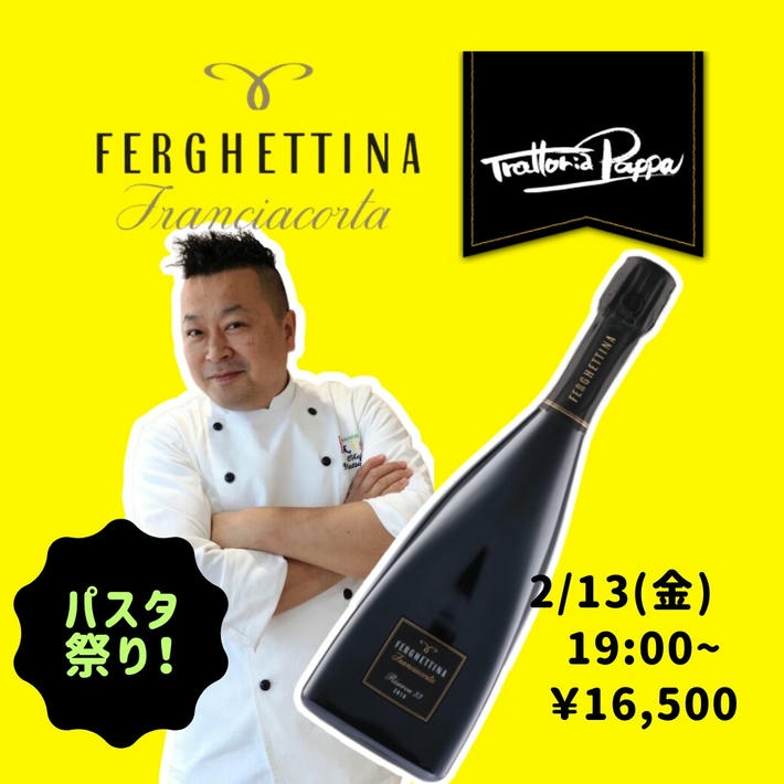 【主催者からのコメント】 お待たせしました! 2/13(金)開催「フェルゲッティーナワイン会」、ついに全情報解禁です。 主役はもちろん—— 「Azienda Agricola Ferghettina(フェルゲッティーナ)」 フランチャコルタを知り尽くした職人が造る、“エレガンスとフィネス”の最高峰を味わう夜です。 会場は「Trattoria Pappa(トラ・・・