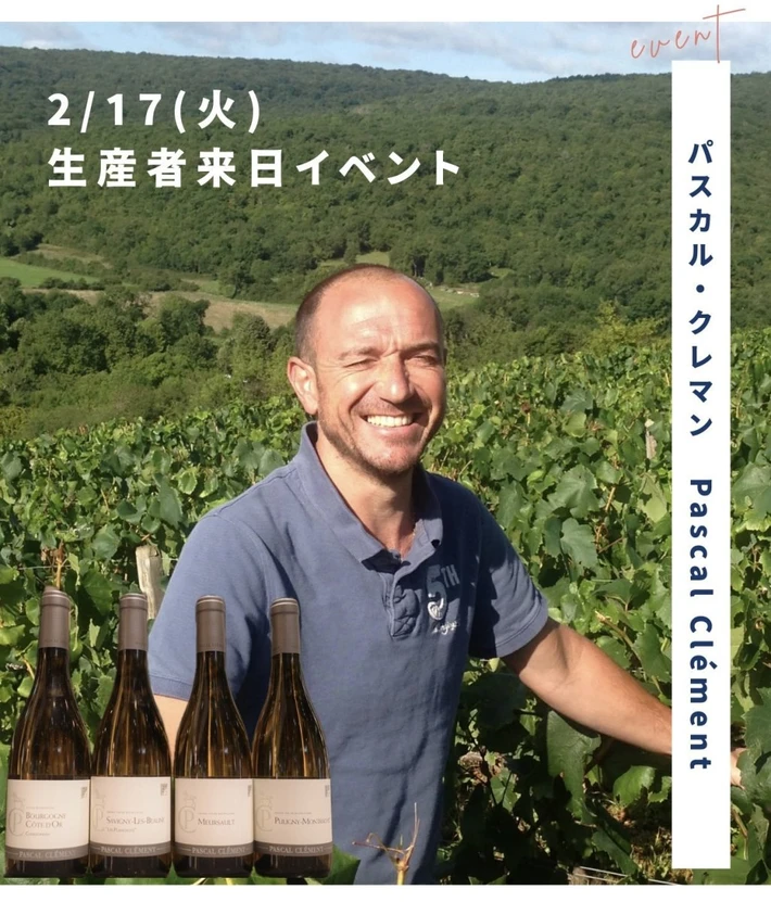 【主催者からのコメント】 ムルソーの名門コシュ・デュリで4年間研鑽を積み、その哲学を受け継ぐ造り手として注目を集めるパスカル・クレマン氏をお迎えし、ワイン造りへの想いやテロワール表現について、ご本人の言葉で語っていただく特別な機会です。 自然な醸造を重視し、ヴィンテージごとの個性を最大限に引き出すそのワインは、調和の取れたバランスと熟成に耐える骨格を備え、フ・・・