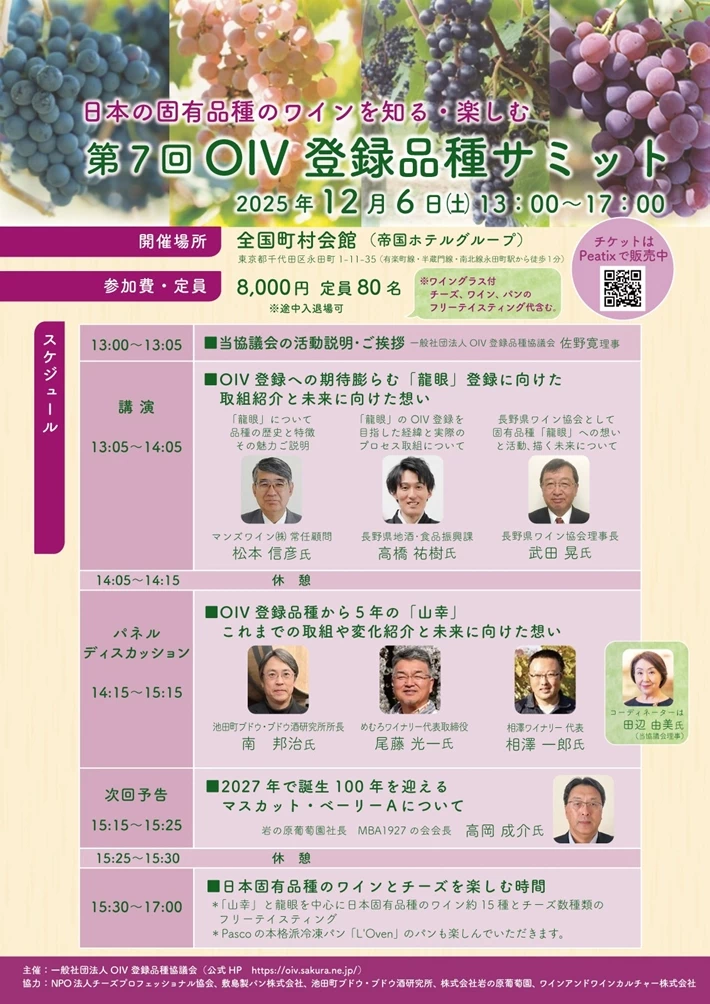 一般社団法人OIV登録品種協議会主催のワインイベントです。 【主催者からのコメント】 国際ブドウ・ワイン機構(・・・