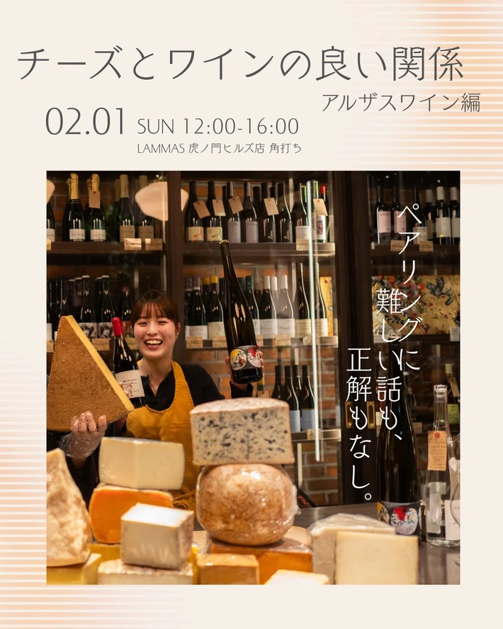 【主催者からのコメント】 チーズとワインの良い関係🧀🍷をテーマに、イベントを開催します。 初回のワインはアルザスをテーマに5種類と、チーズはバラエティ豊かな5種類をご用意します。 ワインとチーズを自由にペアリングしながらご自身の「好き!」を見つける会です。 ペアリングに正解はありませんので、どうぞお気軽にお楽しみください。 私自身、まだ勉強中のため、 皆さま・・・