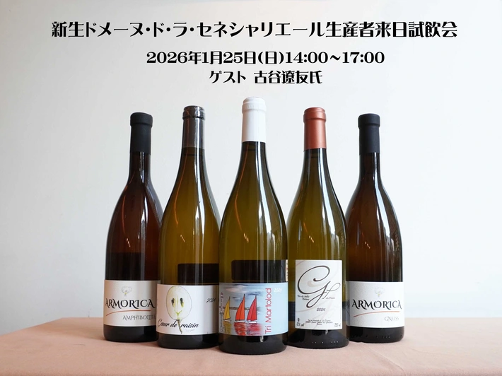【主催者からのコメント】 インポーター野村ユニソンさん取り扱いのドメーヌ・ド・ラ ・セネシャリエール(マルク・ペノ)より生産者 古谷遼友さんをお迎えして試飲会を開催いたします!! 現在、ドメーヌでは10ha以上の畑を管理しています。その栽培と醸造を重鎮であるマルクが担っていましたが、2025年5月、長きにわたりマルクと共にワイン造りに取り組んできた古谷遼友(・・・