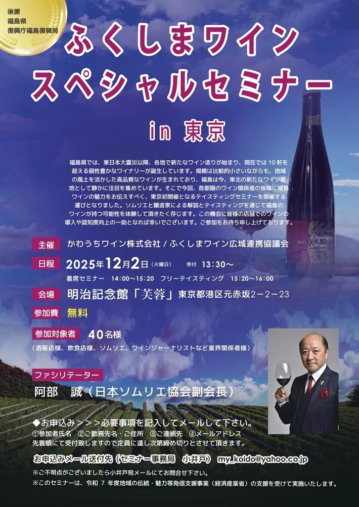 かわうちワイン株式会社/ふくしまワイン広域連携協議会主催のワインイベントです。 【主催者からのコメント】 東日・・・