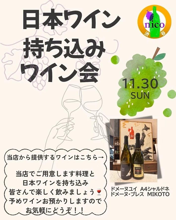 WINE SHOP nico 渋谷店主催のワインイベントです。 【主催者からのコメント】 🍷nicoの日本ワイ・・・