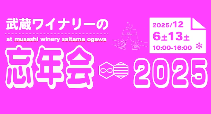 【主催者からのコメント】 2025年12/6(土)と13(土)は2週にわたってワイナリーで忘年会を開催します! あっという間に年末の足音が聞こえてきました。 今年もたくさんのイベントを開催したり、出店したり色々な素晴らしい出会いに恵まれました。 ワインもたくさんの皆様に飲んでいただき本当にありがとうございました。 そこで今年のシメと感謝の気持ちを込めて・・・