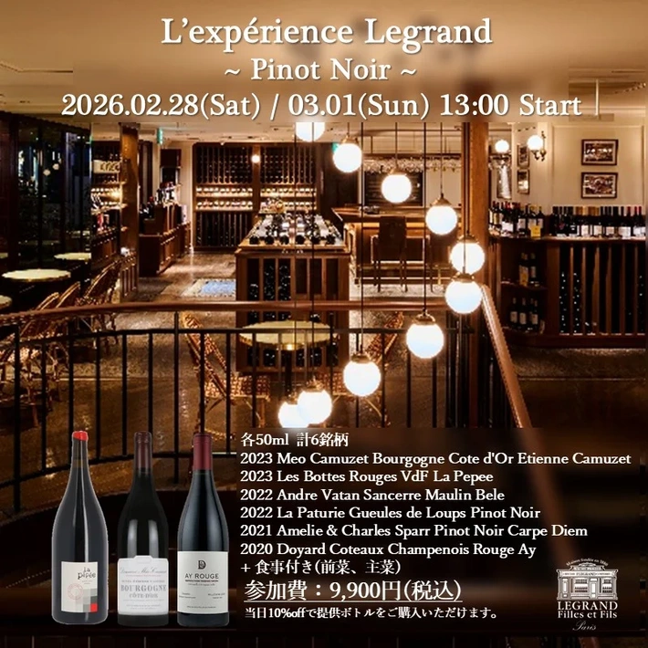この度ルグラン東京では、ピノ・ノワール6種類飲み比べをお楽しみいただく「レクスペリアンス・ルグラン」を開催。