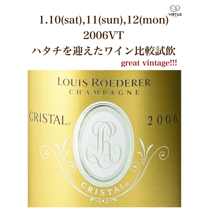 ウィルトス主催のワインイベントです。 【主催者からのコメント】 本年最初の比較試飲は、2006ヴィンテージ・20年熟成ワインにフォーカス。 成人の日にちなんでハタチを迎えた2006年ヴィンテージを集めました✨ 今回は、超豪華”クリスタル”もご試飲いただけます! 2006年は各評価誌でも高い評価を受けるグレートヴィンテージです。 シャン・・・