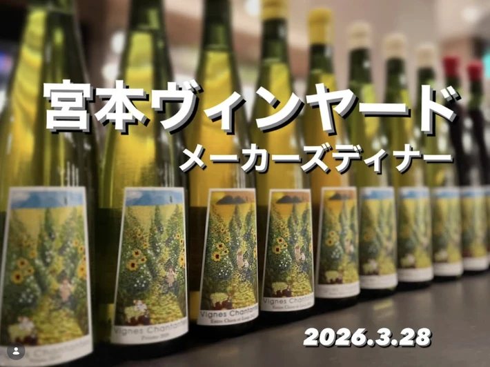 【主催者からのコメント】 この度、宮本ヴィンヤードの宮本亮平さんをお招きして特別なメーカーズディナーを開催いたします! 新しくリリースされるフラッグシップ、「プリズム オマージュ・オー・メートル 2024」と「ヴォロンテ プルミエ・カルティエ 2024」をいち早くお飲みいただける他、飲み頃のヴィンテージも含め全12種類のワインをご用意いたしました。 また今回・・・