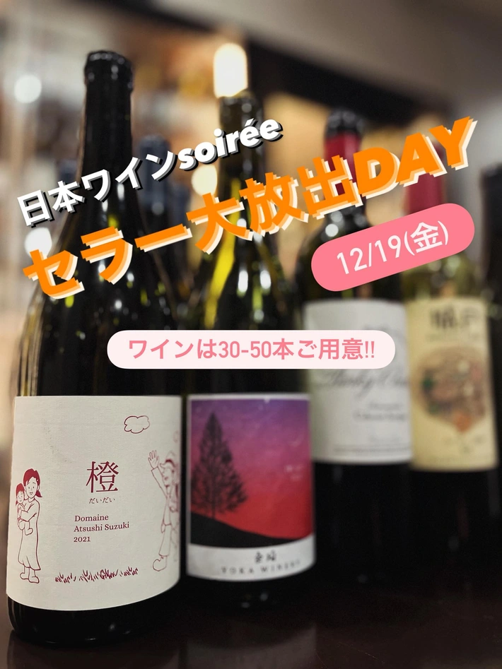 日本ワインソワレ主催のワインイベントです。 【主催者からのコメント】 ワインリスト入れ替えに伴い、普段コラヴァンご提供しているワインをカジュアルにお楽しみいただける日を設けました。 当日は30-50種類ほどの日本ワインをご用意いたします。 また、今回は抜栓していないワインも多くご用意しました! 前回よりもパワーアップした内容となっております! 様々な種類を比・・・