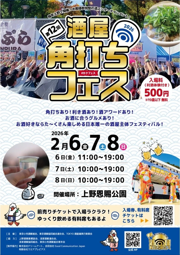 【主催者からのコメント】 酒屋角打ちフェスとは? 数百年続く日本伝統の酒文化を継承しながら酒屋が中心となり「驚き」「発見」を共有! 楽しみながら、日常を共に祝おう! 東京を中心に、各地の酒屋が上野に集結! 酒屋厳選のあらゆるお酒を「角打ちスタイル」で提供しグルメと一緒に楽しむことができるイベントです♪ もちろん、お酒を飲めない方もご来場いただけます。一緒に乾・・・