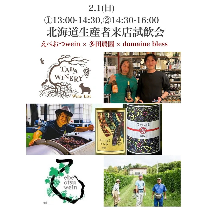 ウィルトス自由が丘 北海道生産者 来店!試飲会 バックヴィンテージあり! えべおつwein × 多田農園 × domaine bless