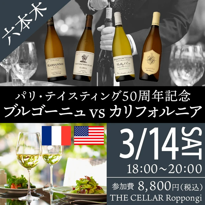 【主催者からのコメント】 1976年5月24日、パリで行われた歴史的ブラインドテイスティング。 のちに「ジャッジメント・オブ・パリ」と呼ばれるこの出来事は、世界のワイン界に衝撃を与えました。 白ワイン部門で対峙したのは、ブルゴーニュとカリフォルニアのシャルドネ。 そして2026年、あのテイスティングから50周年を迎えます。 今回のイベントでは、その白ワイン対・・・