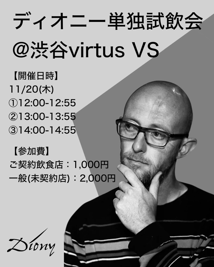 ウィルトス渋谷VS主催のワインイベントです。 【主催者からのコメント】 11月の試飲会はVSとしては初のディオ・・・
