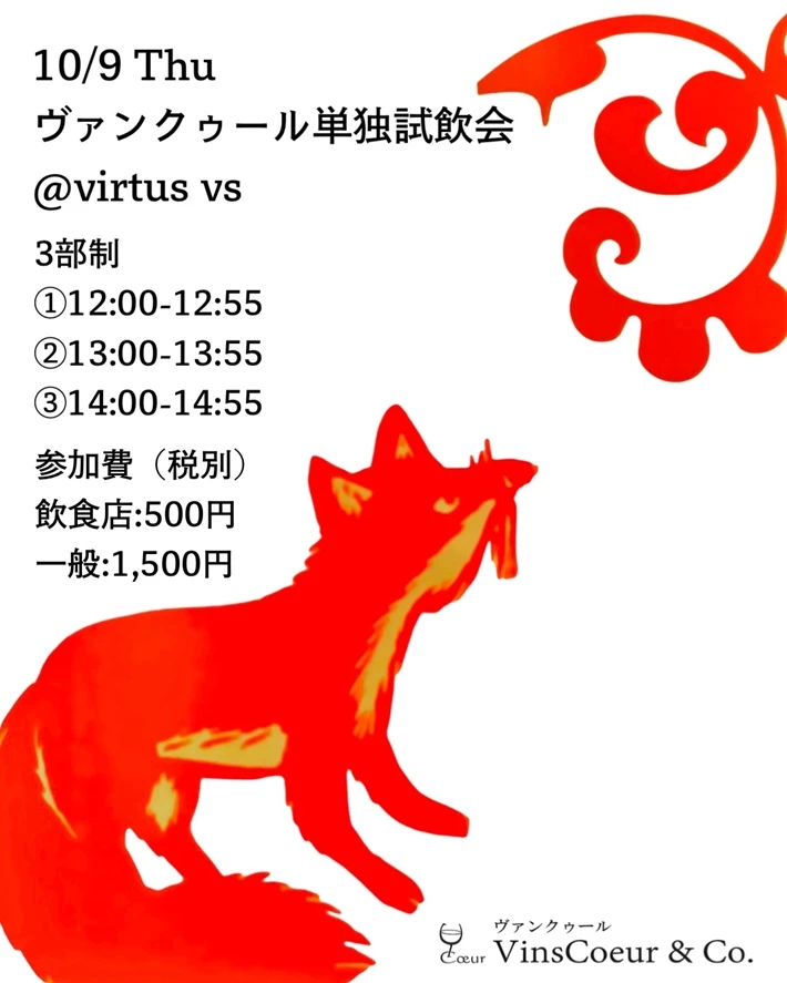 ウィルトス渋谷VS主催のワインイベントです。 【主催者からのコメント】 ウィルトス初!ヴァンクゥールさんの試飲・・・
