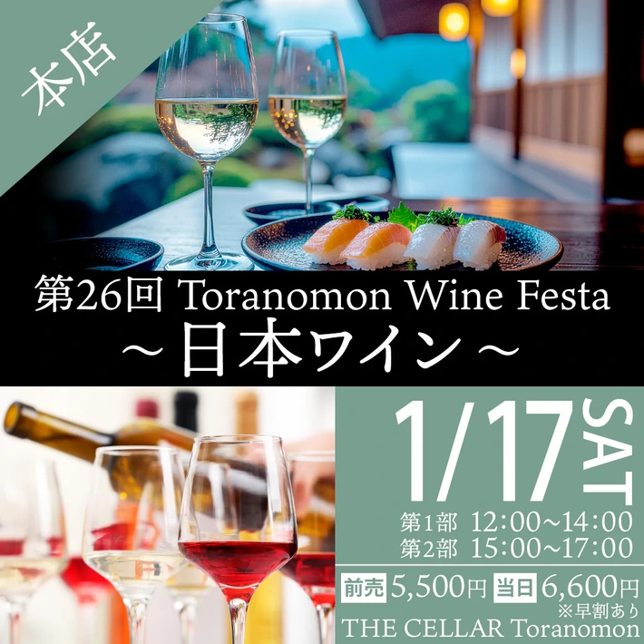 【主催者からのコメント】 2026年1月17日(土) THE CELLAR Toranomonにて、第26回 ”Toranomon Wine Festa“ ~日本ワイン~を開催いたします。 毎月第3土曜日に開催しているToranomon Wine Festa 通称 ”トラフェス” 。 記念すべき2026年第1回目は、「日本ワイン」をテーマに開催いたします・・・