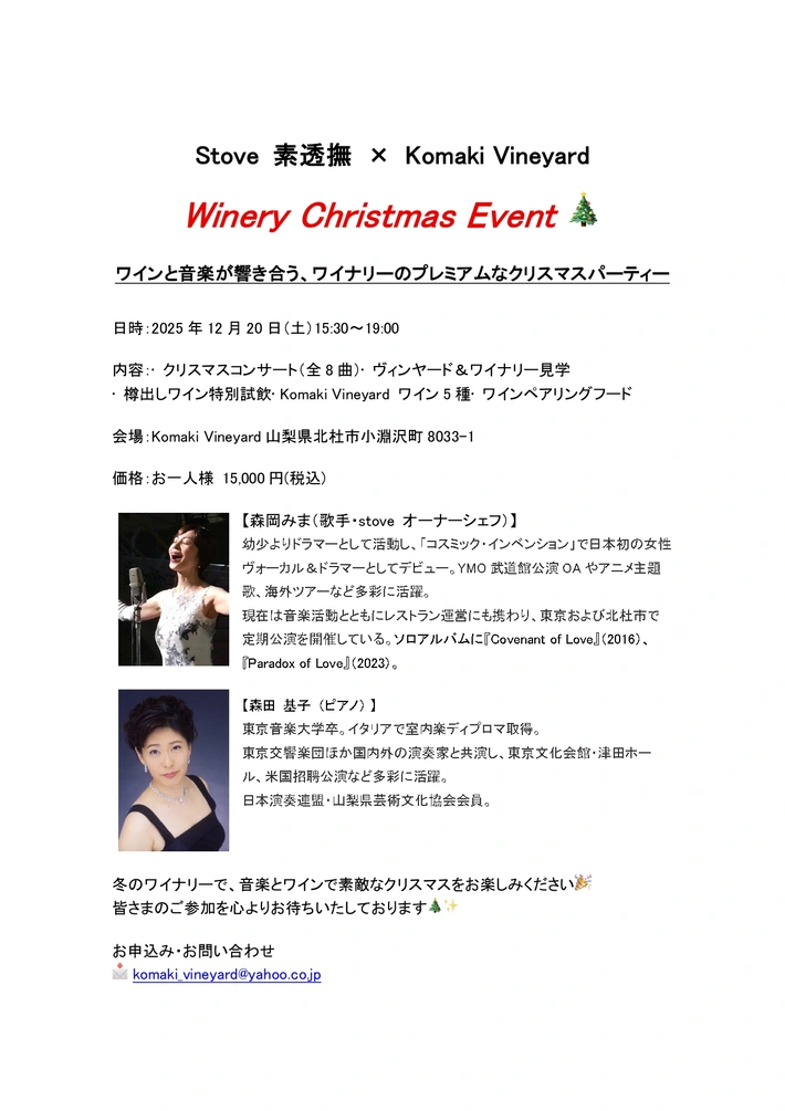 小牧ヴィンヤード 素透撫 Stove × Komaki Vineyard「Winery Christmas Concert 2025」